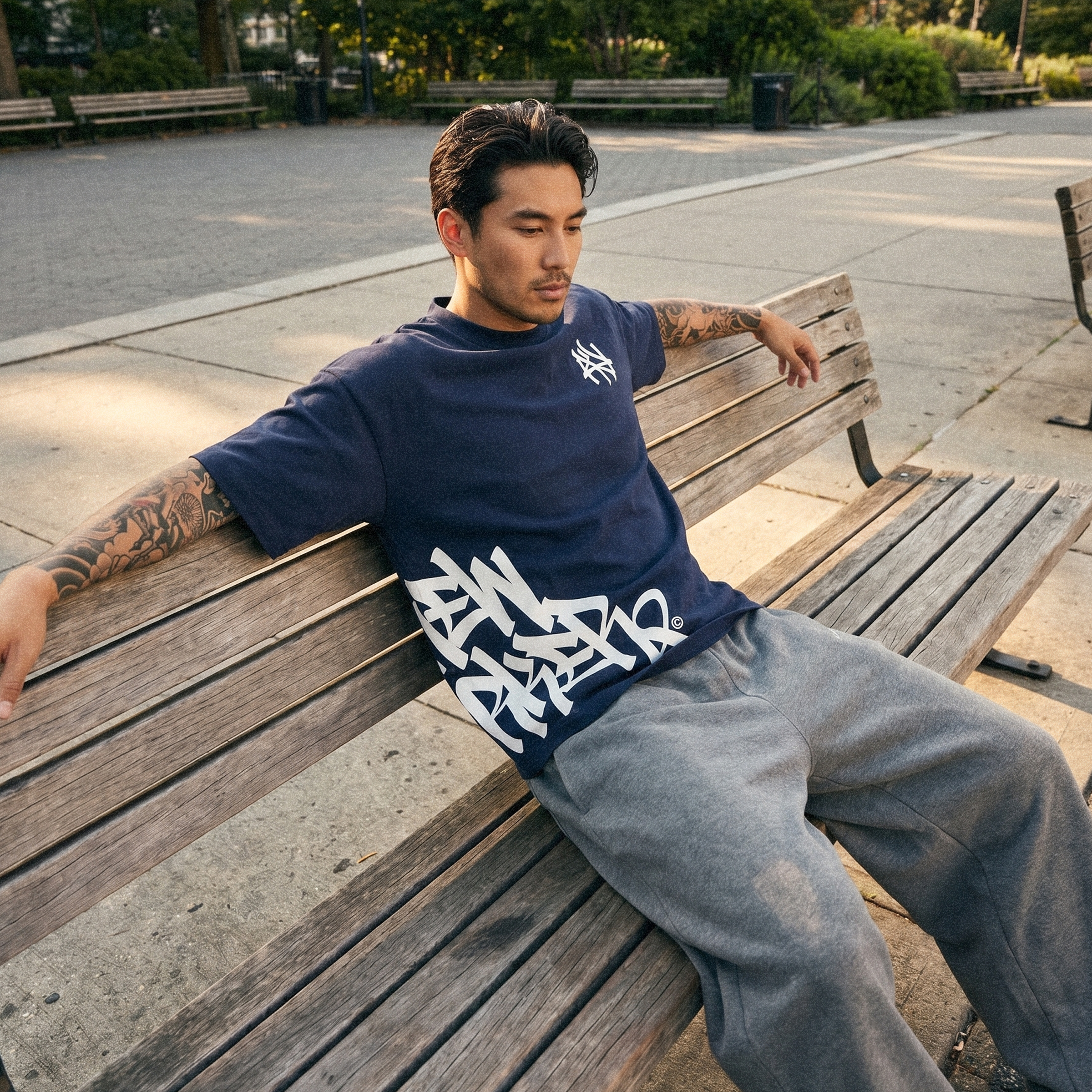 Our latest drop is is all about identity. A word that carries weight if you're really from here. New Yorker. The graffiti letterforms wrap around the back and the bottom like a tag catching the edge of a wall, something you notice more the longer you look.
